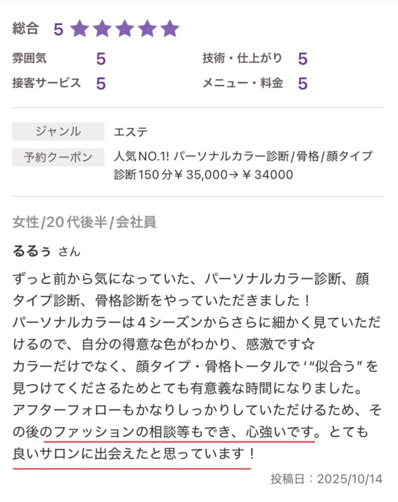 先日、トータル診断を受けて下さったお客様よりとても嬉しいご感想を頂きましたので、ご紹介をさせて頂きます!