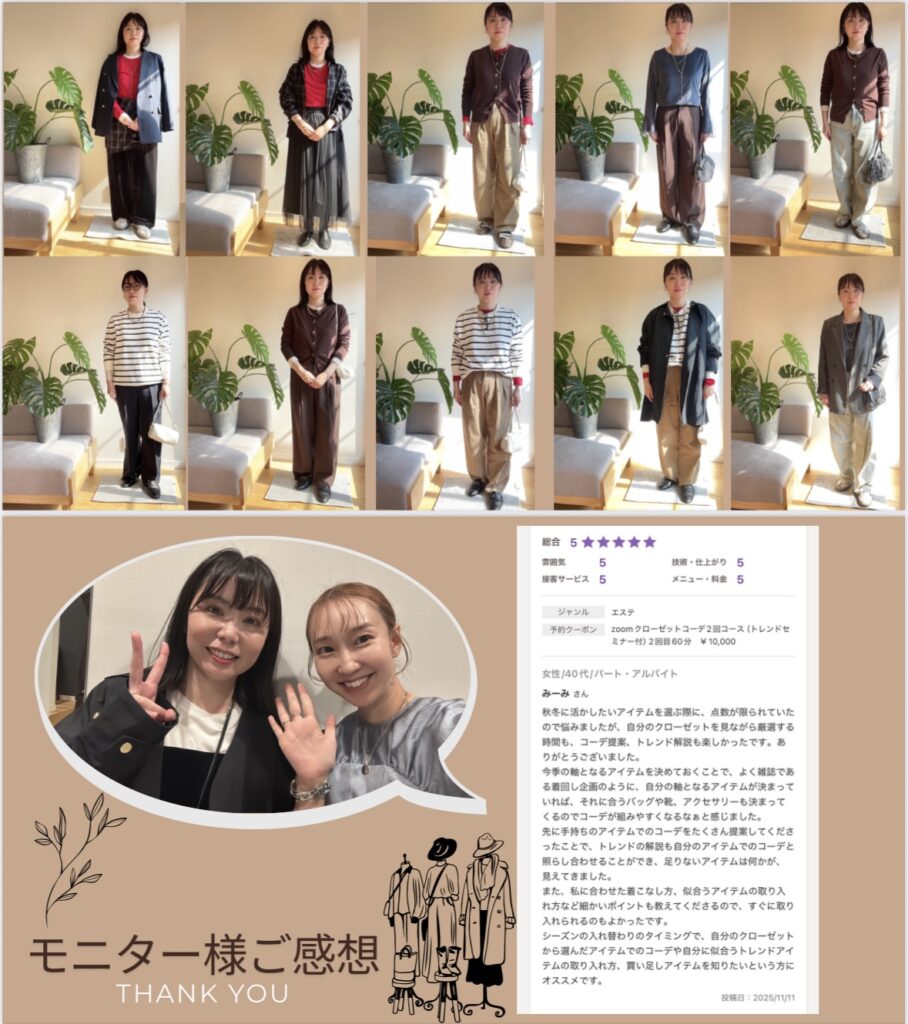 プロの目線で素材やシルエット、着回しまでアドバイスしてもらえるので、無理なく納得して購入できます。寒さに備えつつ、自分らしい冬コーデを手に入れたい方は、ぜひサービスを活用してみてください。