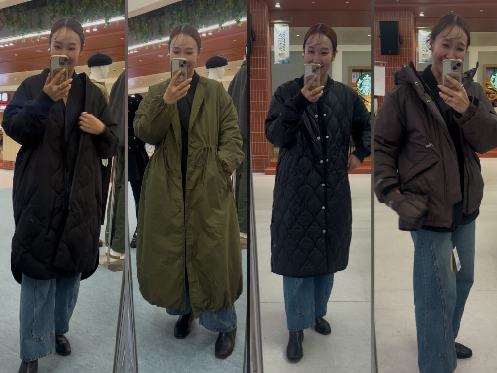 今回の試着会では、実際に多くの方にアウターを羽織っていただきながら、その場でお悩みを伺い、似合うポイントや着こなしのコツをお伝えしました。その中で「これは本当におすすめしたい」と感じた推しダウンに出逢ったので、4点ご紹介します。