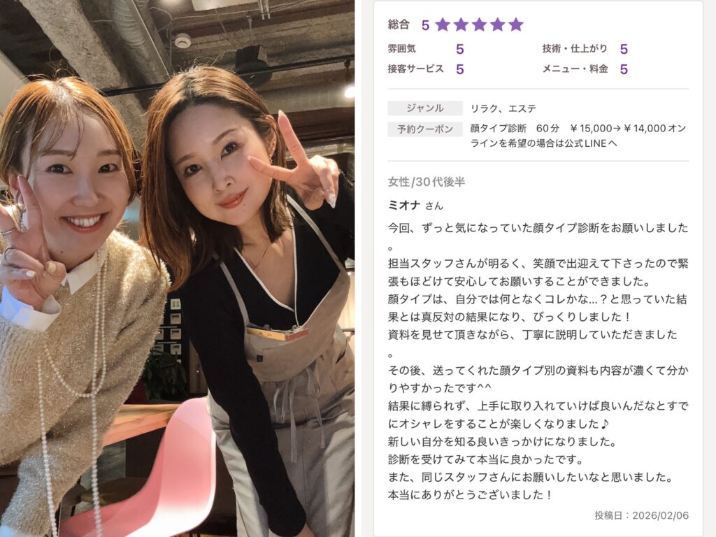 トータルで“自分らしく似合う”を知りたい方には特におすすめです。