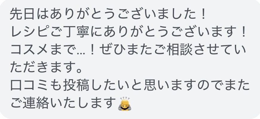後日お渡ししたメイクレシピには嬉しいご感想をいただきました。